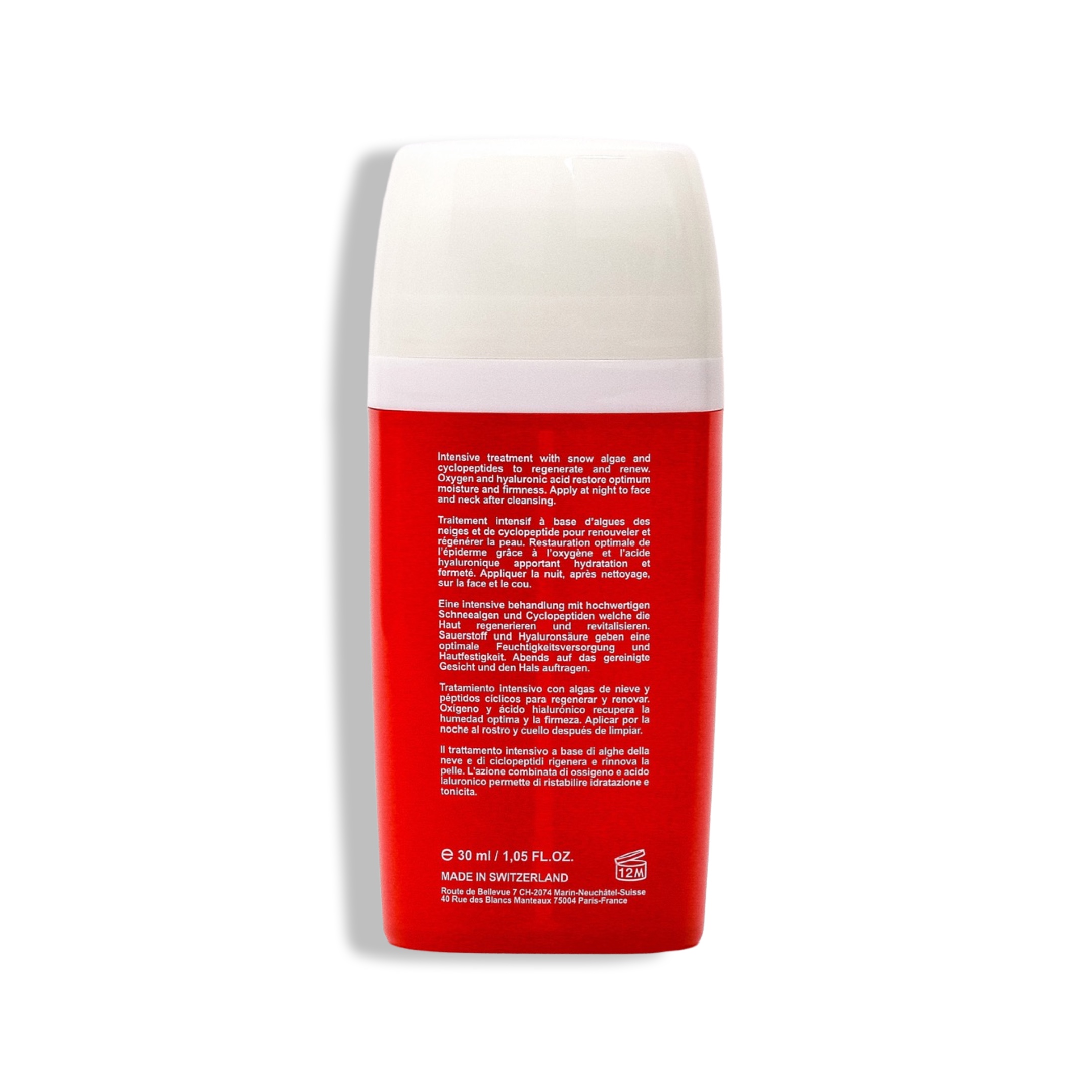 Task Essential System Red enhances skin’s natural overnight regenerative process to deliver outstanding results. Dual delivery chambers allow highly active ingredients to combine at the moment of application for the most potent effectiveness. Rare Snow Algae from the Swiss alps provides effective protection against damage due to environmental stresses. High concentrations of Oxygen and Hyaluronic Acid boost skin’s natural production of collagen for a youthful firmness, while ensuring maximum levels of hydration. New generation Cyclopeptides and Argan Stem Cells promote cell renewal. Skin texture and structure are strengthened, vitality is restored, and the appearance of lines and wrinkles is reduced. Apply each night to face and neck after cleansing. The size of the product is 30 ml.